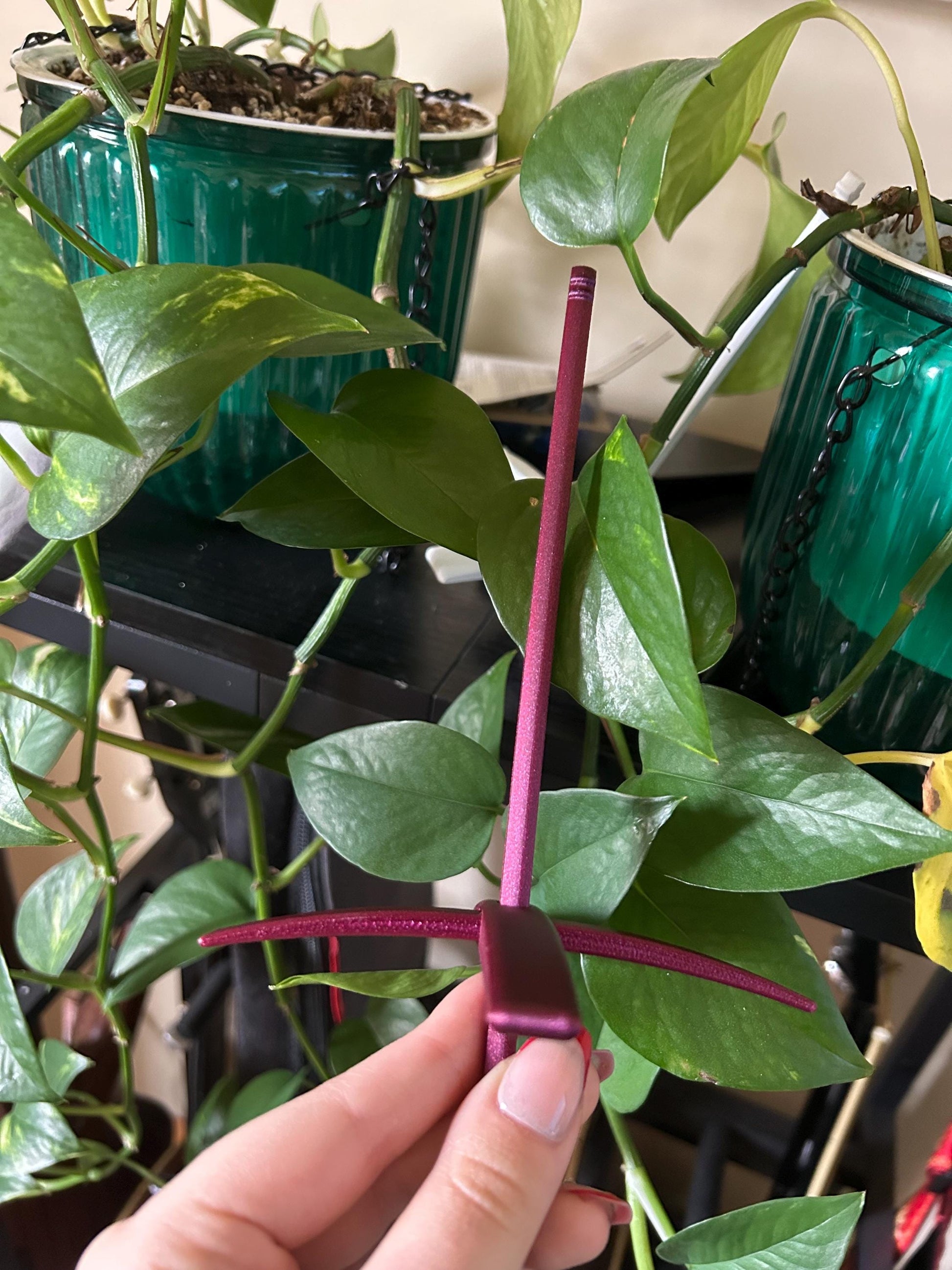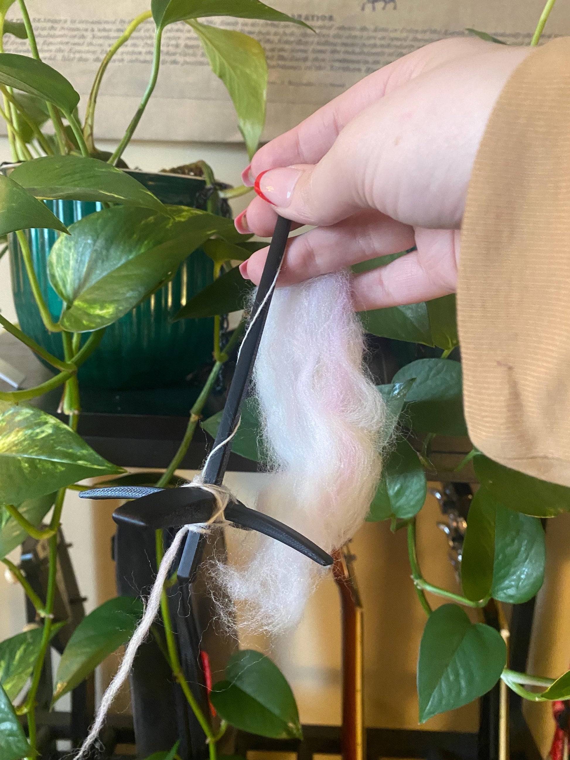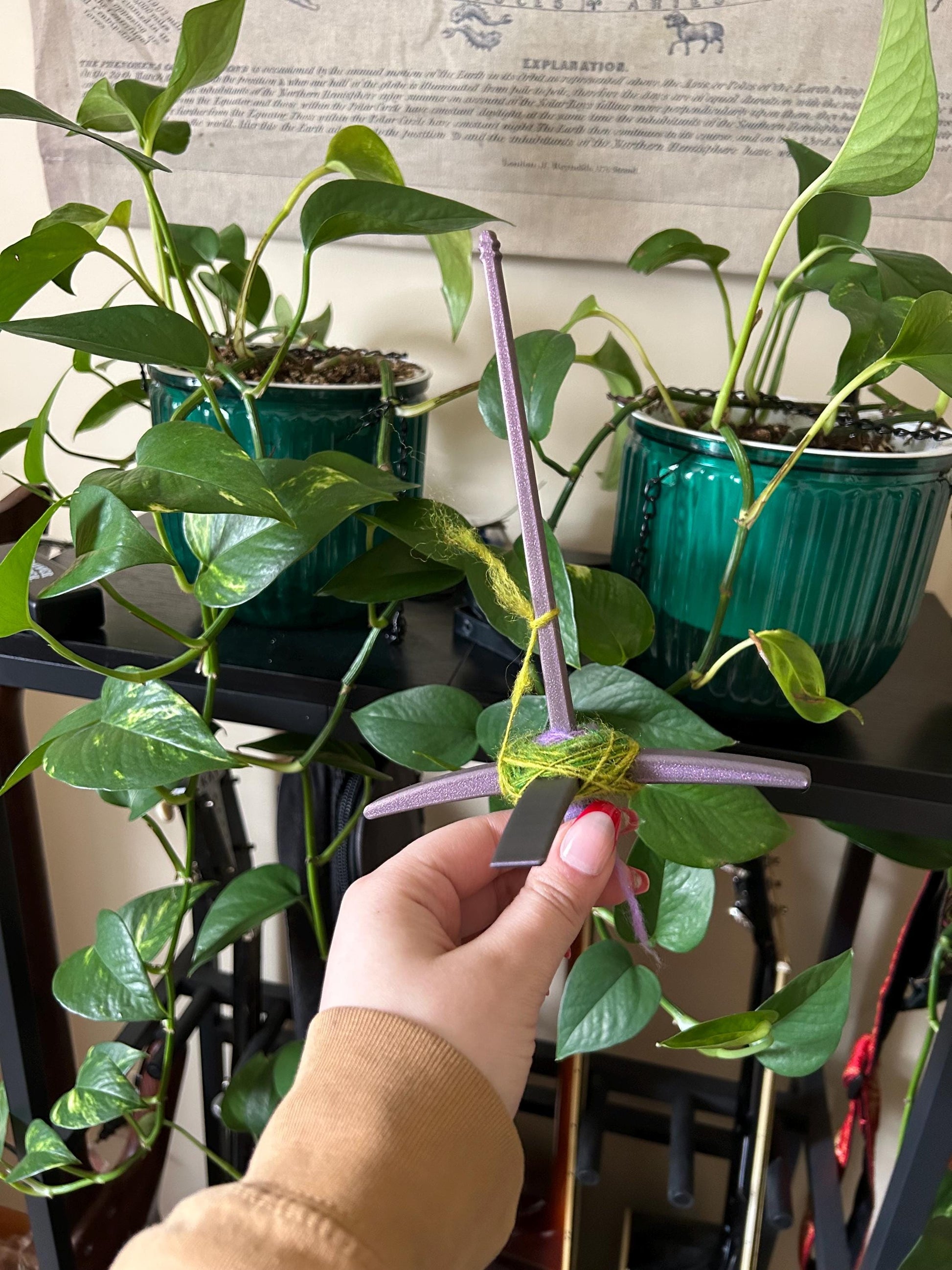 Turkish Drop Spindles made in house! Different sizes available. Currently we offer black, white, and a beautiful sparkly red and purple! In these photos, purple is the largest, white is the medium, and black is the mini. Any size can be made in any color. Perfect for those who love center pull balls!